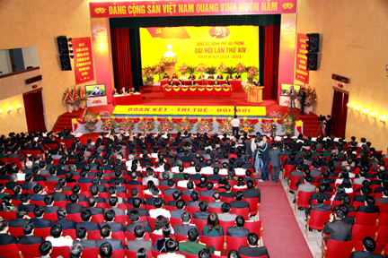 On behalf of 13th City Party Committee, City Party Committee Secretary Nguyen Van Thuan political presented the Congress’s political report with the theme: "To further the leadership, political spirit and resistance of the entire city Party; to bring into full play the advantages of a port city and the strength of national unity; to advance the industrialization and modernization course to principally build Hai Phong as a modern city of industries and services in 2015".