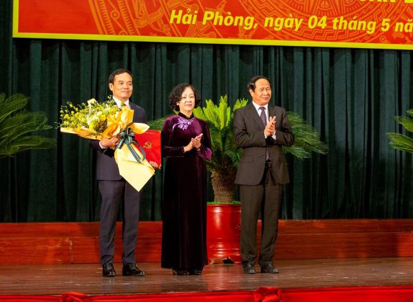 According to decision No.83 dated April 29, 2021 of the Politburo, Mr. Tran Luu Quang, member of the Party Central Committee was assigned to hold the position of Secretary of Haiphong Party Committee in term 2020-2025. On behalf of the Politburo, Ms. Truong Thi Mai presented flowers to Mr. Le Van Thanh and handed the decision of appointment to Mr. Tran Luu Quang. Head of the central Organization committee acknowledged the achievements made by Haiphong in the past term. In particular, she highly appreciated the role and dedication of Deputy Prime Minister Le Van Thanh, wishing him in the new position will continue to promote his mentality and strength, together with the government to build a prosperous and strong country. Assigning the task to the new secretary of Haiphong Party committee Tran Luu Quang, Head of the central Organization committee believed that with his accumulated experience, Mr. Tran Luu Quang would together with Haiphong Party committee try hard to build Haiphong to become a modern industrial city.