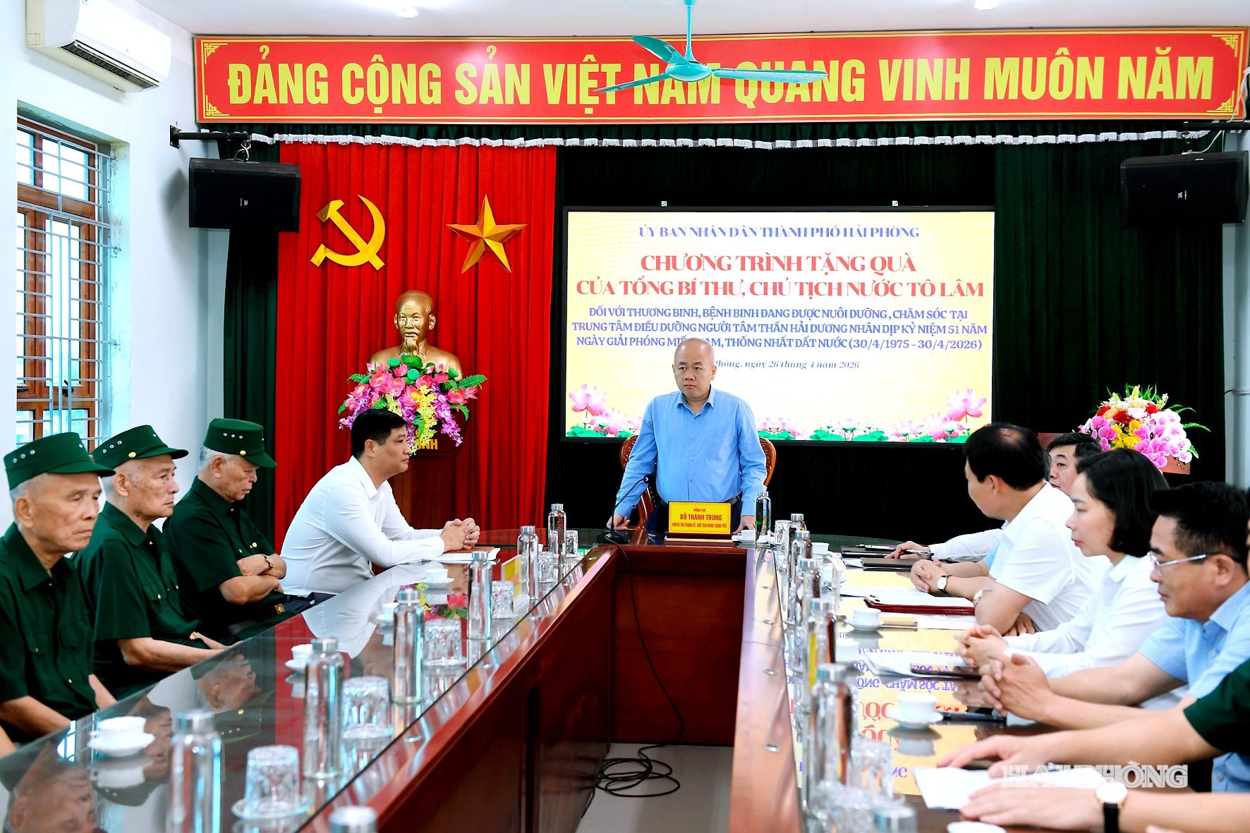 On April 26, Deputy Secretary of the City Party Committee and Chairman of the City People’s Committee Do Thanh Trung, together with representatives of several departments, agencies and local authorities, visited and presented gifts from General Secretary and State President To Lam to wounded and sick soldiers at Social Protection Centers for People with Mental Illness in Hai Duong, on the occasion of the 51st anniversary of the Liberation of the South and National Reunification (April 30, 1975 – April 30, 2026).