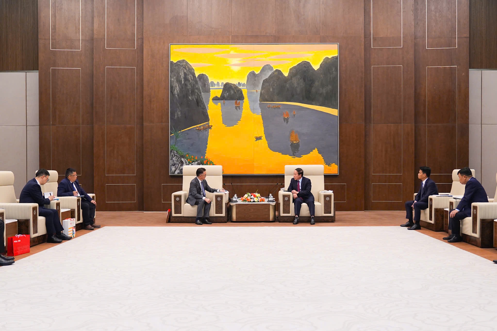 Delegation Le Tien Chau met the working delegation of TCL Technology Group led by Mr. Wang Cheng - Executive Director on their working visit to Hai Phong city. Mr. Le Ngoc Chau - Deputy Secretary of the City Party Committee, Chairman of the City People Committee members of the Standing Committee of the City Party Committee, leaders of relevant committees and departments also received the delegation.